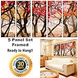 Get a Special Offers Framed Huge Canvas Print 5 Panel Autumn Forest Painting Art on Giclee Canvas Print