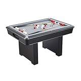The Harvil Bumper Pool Table boasts a sturdy, stable construction for years of billiard fun! This durable game table includes an MDF playing surface with grey felt cloth and rubber bumpers. Thick wooden legs and adjustable leg levelers ensure a smooth and sturdy playing surface. The Harvil Bumper Pool Table includes two 48in cues, 10 bumper pool balls, a table brush, and chalk.