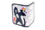 Keep your cash, coins and cards secure and organized with our colorful SeaWorld Whale Wallet. Splashy exterior design features a happy jumping whale and a brightly colored background with glitter accents and durable snap closure. Interior has four slots for credit cards or ID, cash compartment plus a small zipper pouch. Complements the SeaWorld Whale Coin Purse.